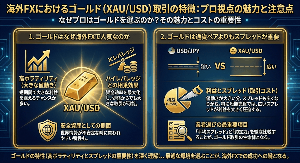 海外FXにおけるゴールド(XAU/USD)取引は、値動きの大きさと高い流動性から非常に人気があります。
