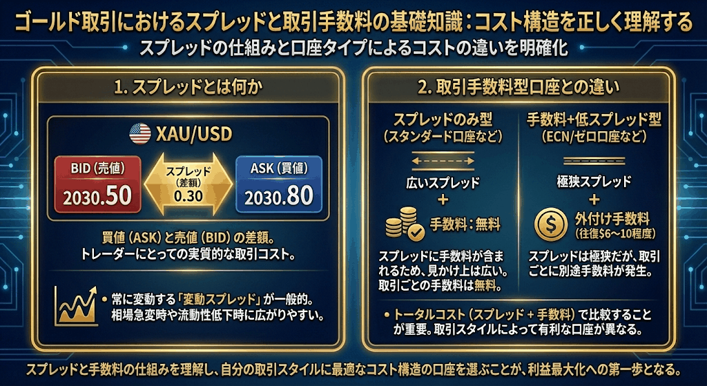 海外FXでゴールドを取引する場合、スプレッドと取引手数料は「単なる数字」ではなく、長期的な損益を左右する重要な要素です。