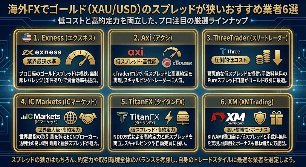 本記事では、海外FXでゴールドのスプレッドが狭いおすすめ業者、スプレッドと取引手数料の違い、実質コストの考え方、比較時の注意点、スキャルピング・デイトレ・自動売買での最適な業者選定まで、実践的な視点で詳しく解説します。