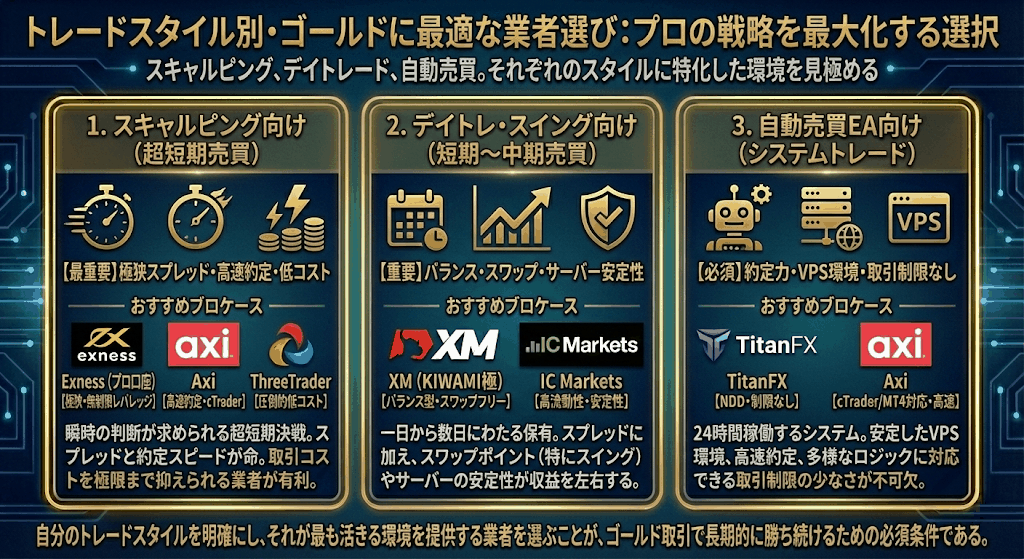 特にスキャルピングや自動売買でゴールドを取引する場合、業者選びを最適化することで、同じ手法でも結果が大きく変わります。