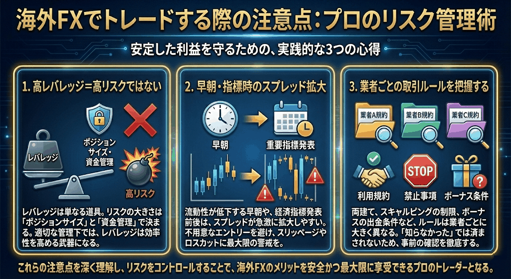 本記事では、プロが実際に重視している海外FX業者の条件や特徴を整理し、あわせておすすめ業者、トレード時の注意点、そして海外FX特有のリスクについても詳しく解説していきます。